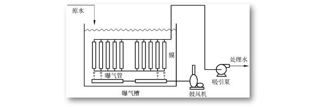 膜組件直接放置在曝氣池中,通過(guò)負(fù)壓泵將凈化后的水抽出,活性污泥則被截留在曝氣池內(nèi)。膜組件下方還會(huì)設(shè)置曝氣裝置,通過(guò)氣泡使膜片抖動(dòng),來(lái)減少活性污泥在膜表面的積累,減少膜污染的形成。
